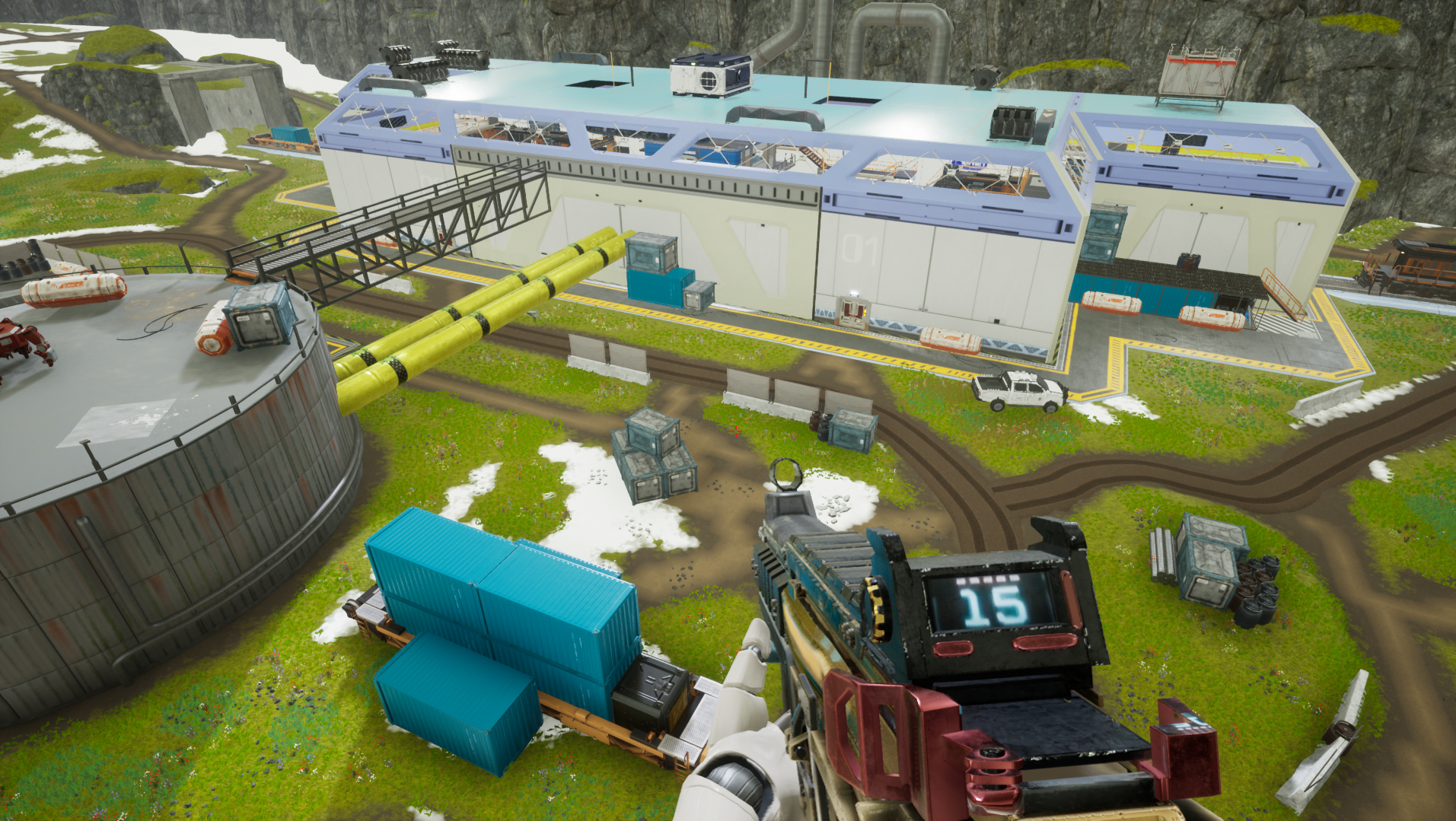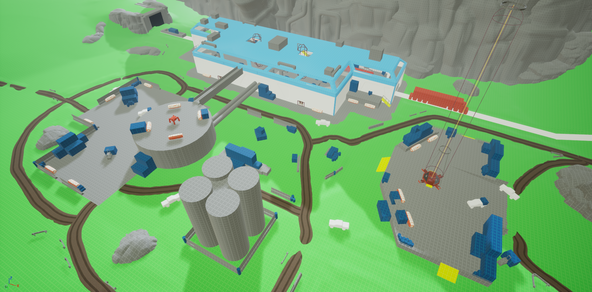 “Production Line” is a level blockout inspired by some of my favorite landing spots in the early seasons of Apex Legends. This mid-sized POI has a mixture of open outdoor space and a clustered interior building to fight, loot, and defend.