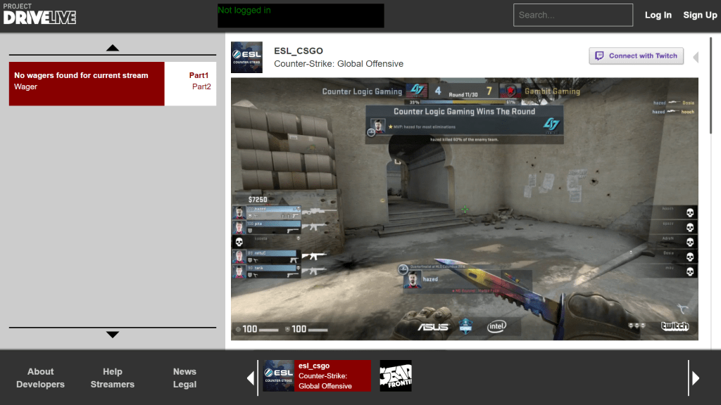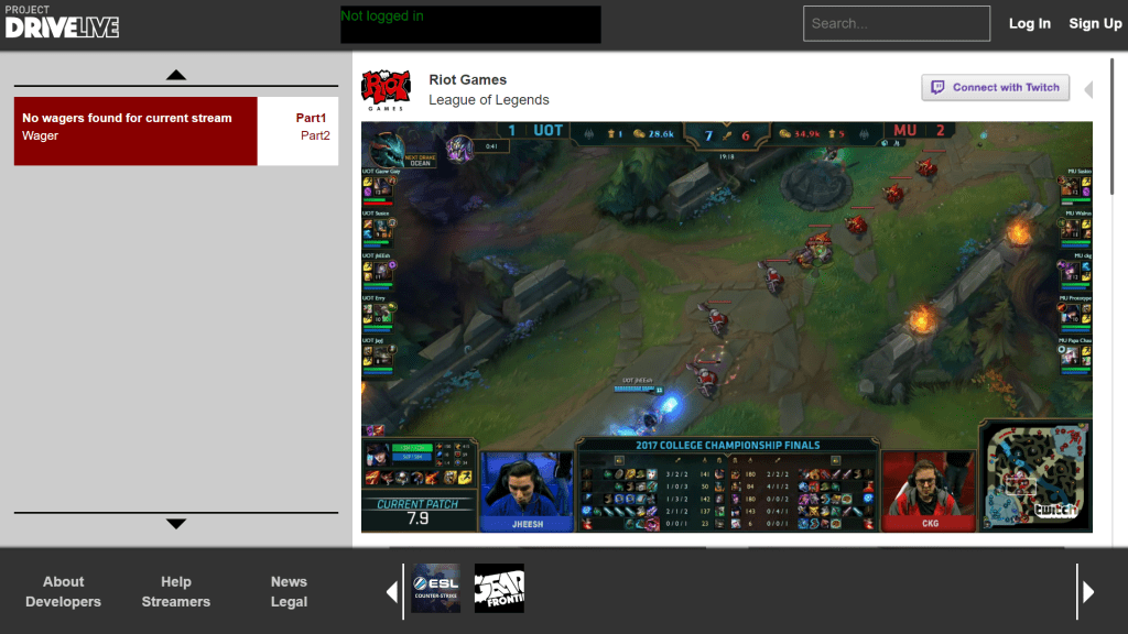 Project DriveLive was an audience engagement platform with Twitch and Steam integration that focused on viewer interaction with the stream. Viewers would be able wager virtual currency based on what they thought would happen next in a given streamer’s game. Twitch later implemented a similar system in their product. I was the producer on the project responsible for managing the team of programmers that built the site.