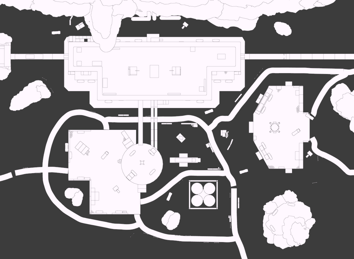 I thought it would be fun to make my own Point of Interest (POI) from Apex Legends since I played the game so much. I took inspiration from several of my squad’s favorite landing spots from back in the early seasons of Apex, from both King’s Canyon and World’s Edge before many of the changes that were made to those maps. I was interested in designing the building as a semi-symmetrical space, but I especially wanted to challenge myself to strike a balance between a large, wide open area and a smaller, more hectic building interior.